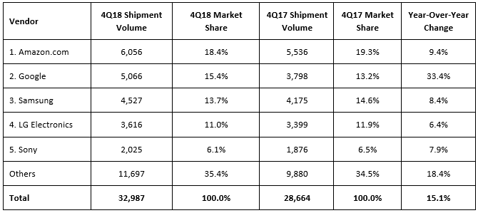 Record 7.5 million smart speakers shipped in Europe in 4Q18