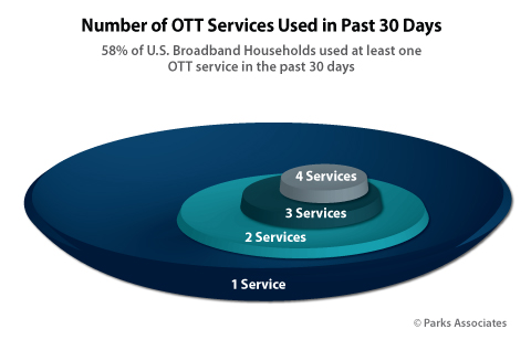- 58% of U.S. broadband households have used at least one OTT video service in the past 30 days.
