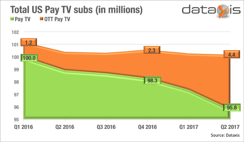 Linear OTT Pay TV continues to add subscribers reaching 4.4 million subs for Q2 2017