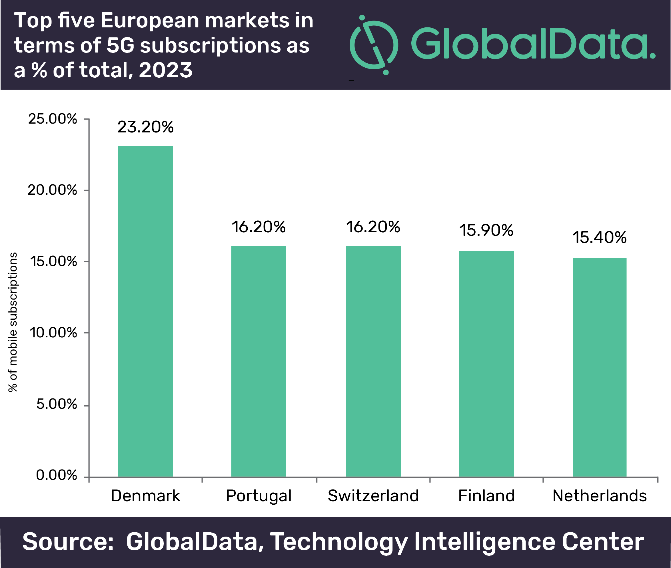 In Europe, Western countries are leading 5G development, with Denmark, Portugal and Switerland’s 5G adoption set to take a 23.2%, 16.2% and 16.2% share respectively of total mobile subscription in their markets by 2023, according to GlobalData, a leading data and analytics company.