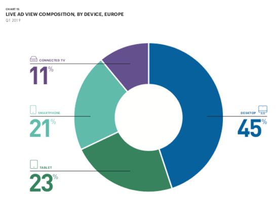 - Desktop leads the devices used to view live premium video with over 40% of live ad views.
