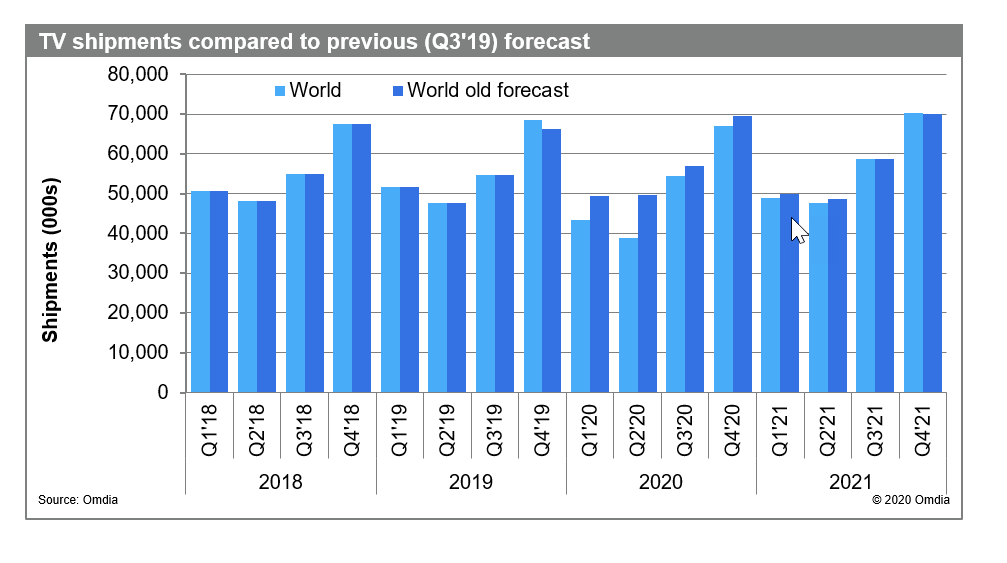 Omdia cuts 2020 TV shipment forecast by 10 percentage points