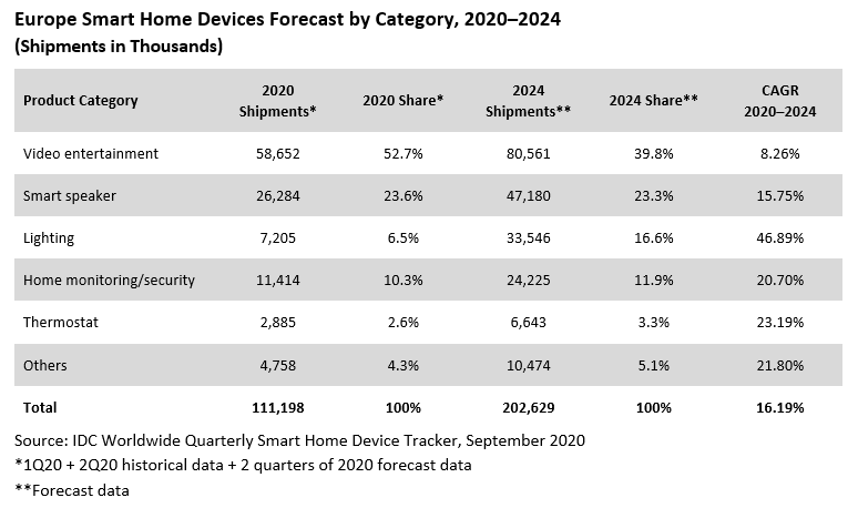Despite a Decline in 2Q 2020, the Smart Home Market is Expected to Rebound in the Second Half of the Year in EMEA, says IDC