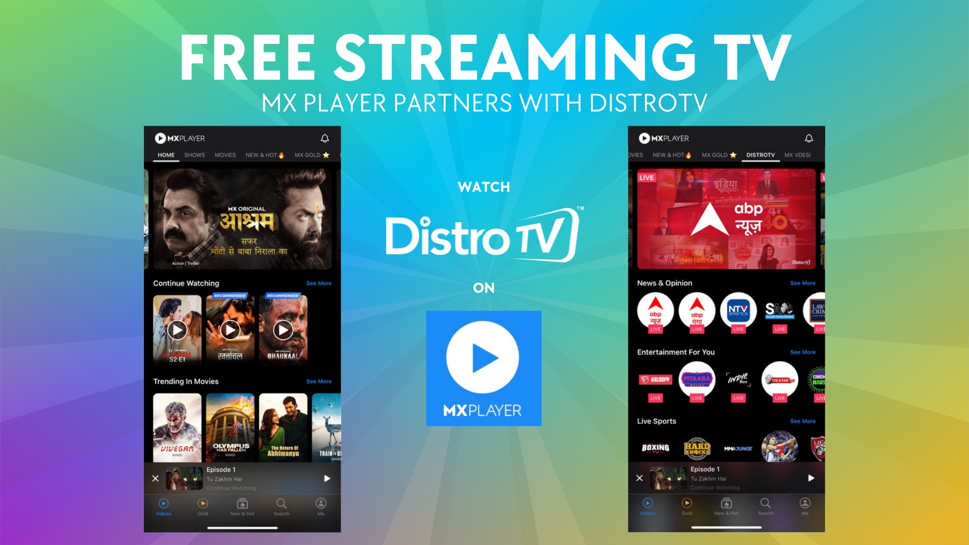 - MX Player and Distro TV Partnership will enable millions of its users to watch 24/7 Live streaming content from Indian and International channels