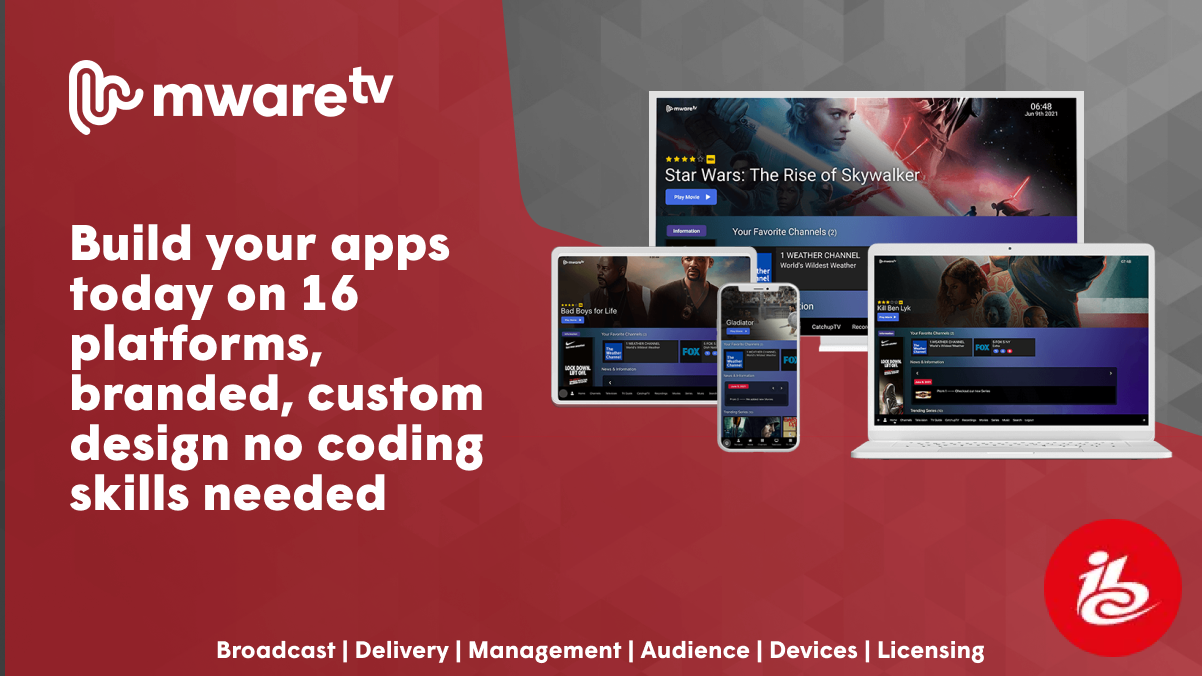 AMSTERDAM, The Netherlands — MwareTV, a leading cloud-based multi-tenant platform provider, has tackled the critical issue of branding services with a unique approach to creating consumers apps. The software functionality, App Builder, is part of the core services of the MwareTV platform and will be demonstrated at IBC2023 (15 – 18 September, RAI Amsterdam, stand 5.A10).