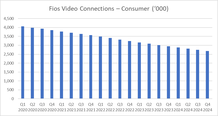 Verizon FIOS consumer video subscribers down 60,000 in 4Q 2024