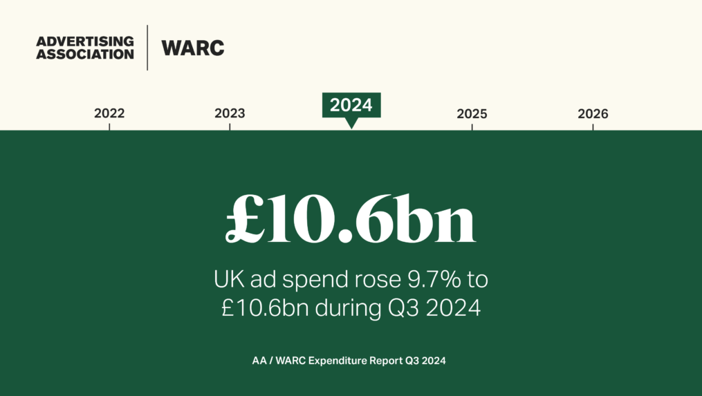 UK ad spend rose 9.7% to £10.6bn in Q3 2024