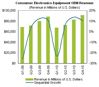 To a degree, this appears to be working, with aggregate consumer electronics product unit shipments set to rise sequentially by 5 percent, 16.1 percent and 14.1 percent in the second, third and fourth quarters.